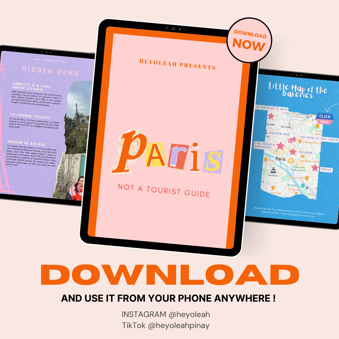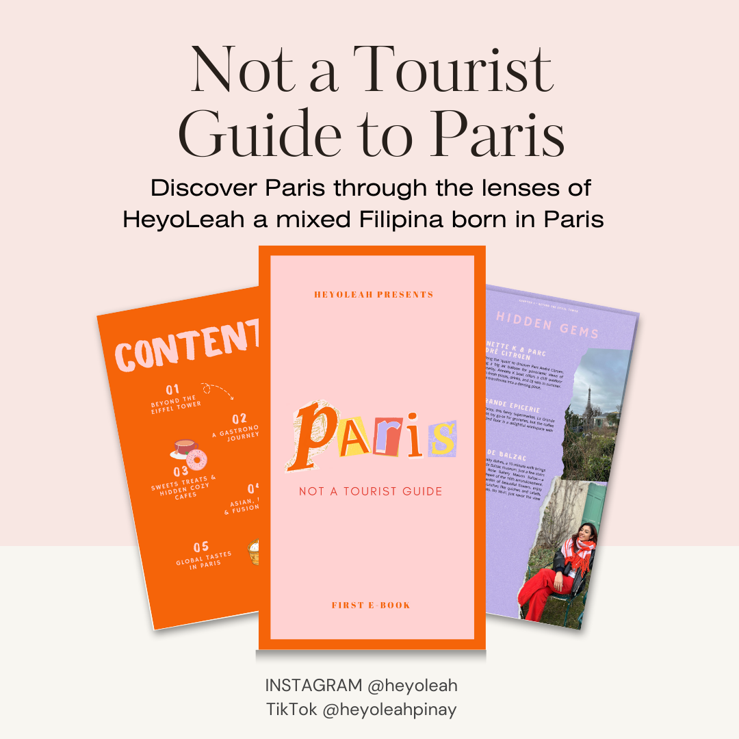 I've harnessed all my inspiration and energy to compile a unique set of advice and recommendations just for you. Now, if your agenda includes hitting the classic tourist spots, no judgment here, but you might want to snag one of those generic guides lining the shelves. Mine, however, is a different breed. It's your ticket to discovering Paris through the eyes of a local French-Filipino gal, complete with specific interests and a lifestyle you might just resonate with.
